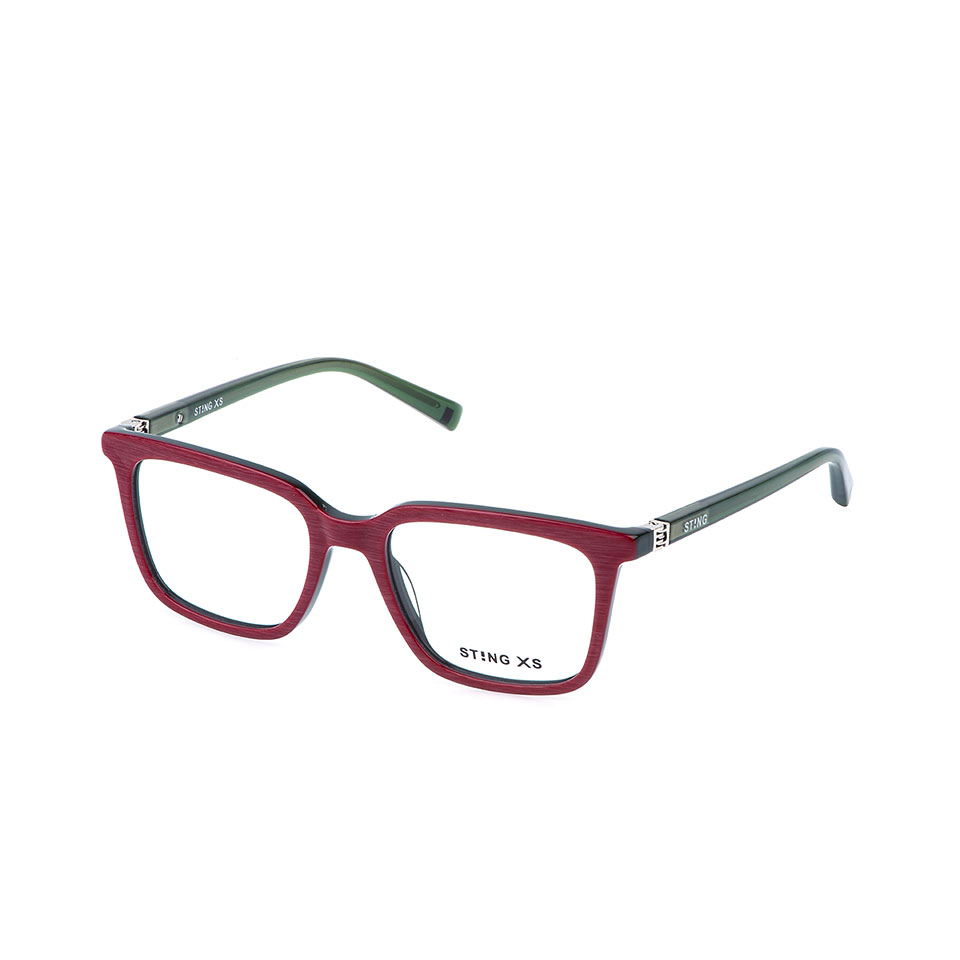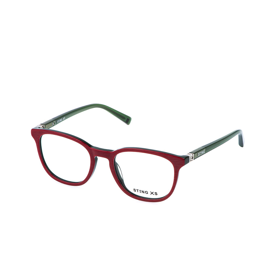La VSJ749 es una gafa graduada para chica, con una moderna forma de ojo de gato y construcción de acetato. Las varillas tienen un núcleo metálico visible a través del acetato transparente, lo que añade un toque de elegancia al diseño. Un elemento distintivo es la decoración cuadrada de las puntas de las varillas, una reinterpretación del signo de exclamación del logotipo de la marca STING XS.