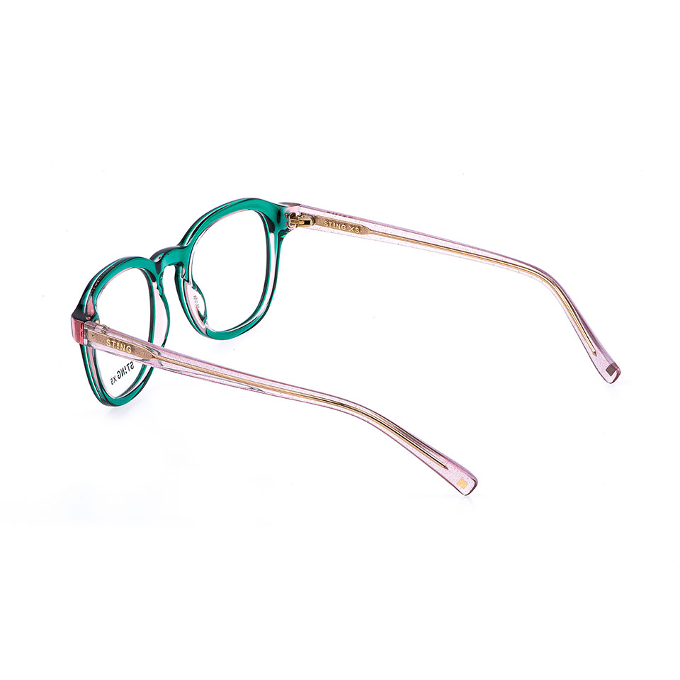 Las VSJ753 son unas gafas graduadas de acetato para niños con una moderna forma pantos y vibrantes combinaciones de colores. Los distintivos terminales presentan una decoración cuadrada en los terminales, una reinterpretación del signo de exclamación del logotipo de la marca STING XS. El logotipo de la marca está grabado en el interior de la patilla derecha, subrayando la autenticidad y el estilo de la marca.