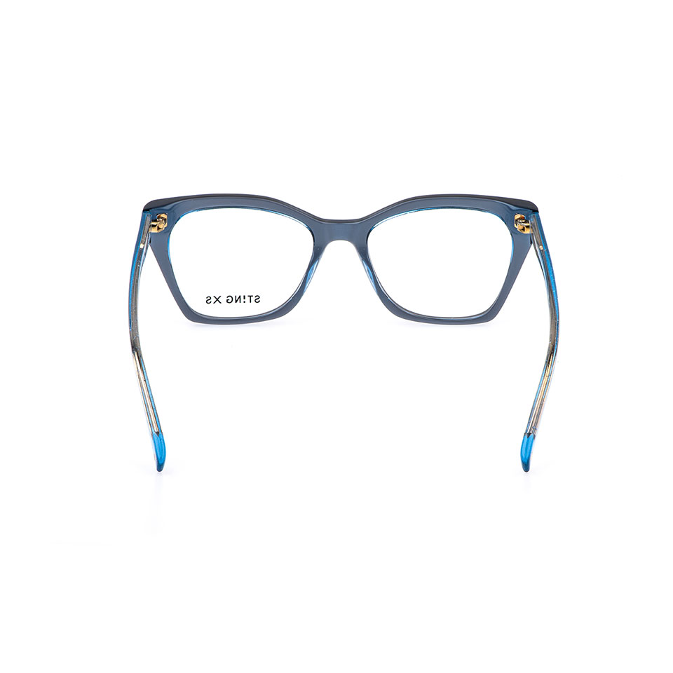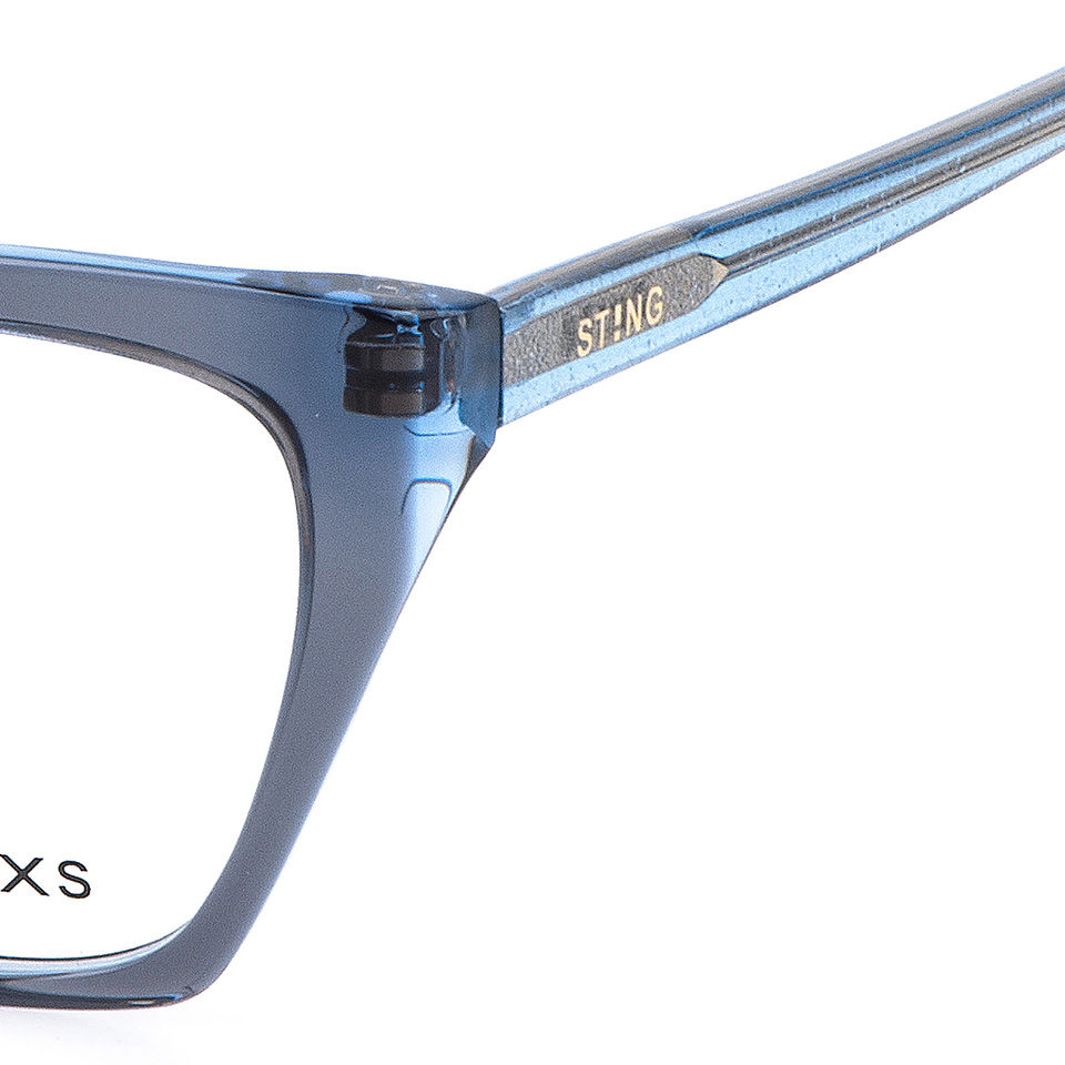 Las VSJ752 son unas gafas graduadas de acetato para chica, con una moderna forma de ojo de gato y vibrantes combinaciones de colores. Las inconfundibles varillas aportan personalidad al diseño y presentan una decoración cuadrada en el extremo de las varillas, una reinterpretación del signo de exclamación del logotipo de la marca STING XS. El logotipo de la marca está grabado en el interior de la patilla derecha, subrayando la autenticidad y el estilo de la marca.