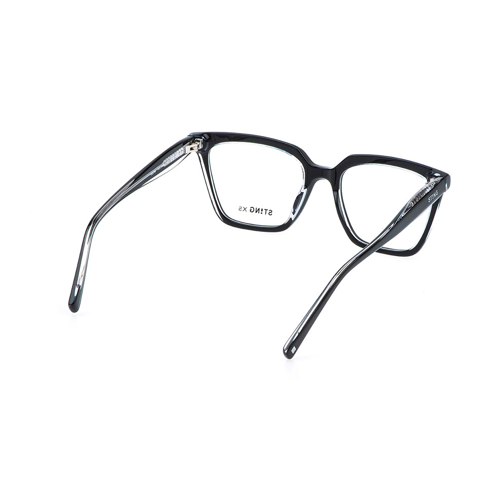 Il modello VSJ749 è un occhiale da vista per bambine, caratterizzato da una forma cat-eye alla moda e da una costruzione in acetato. Le aste distintive presentano un’anima in metallo visibile attraverso l’acetato trasparente, aggiungendo un tocco di eleganza al design. Un elemento distintivo è la decorazione quadrata presente sui terminali delle aste, reinterpretazione del punto esclamativo del logo del brand STING XS.