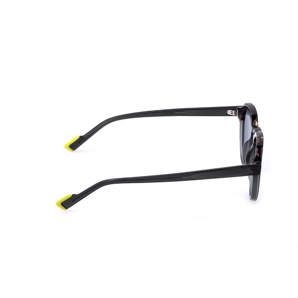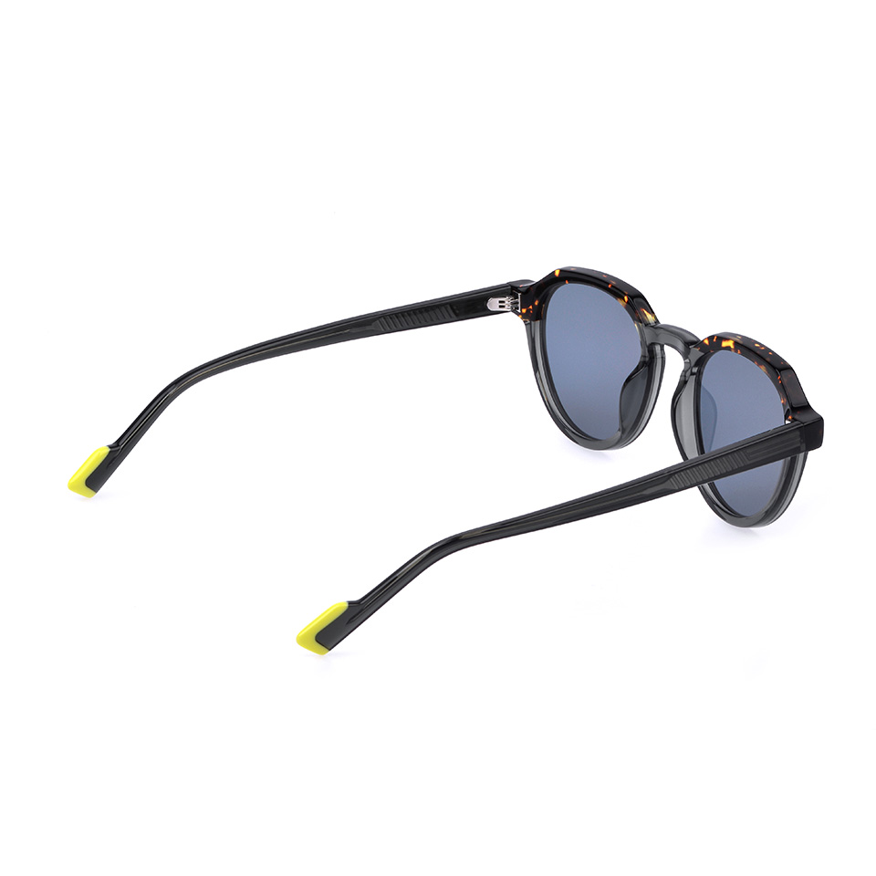 Gafas de sol de acetato con la clásica forma pantos. Diferentes texturas y colores caracterizan las distintas versiones del modelo. Un punto más de color, en perfecto IN inspirado en el estilo STING, se encuentra en los terminales de las varillas: una unión especial que crea el icónico efecto contrastante.